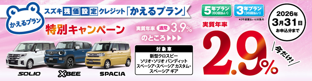 【対象車種限定!】残価設定クレジット「かえるプラン」特別手数料率キャンペーン