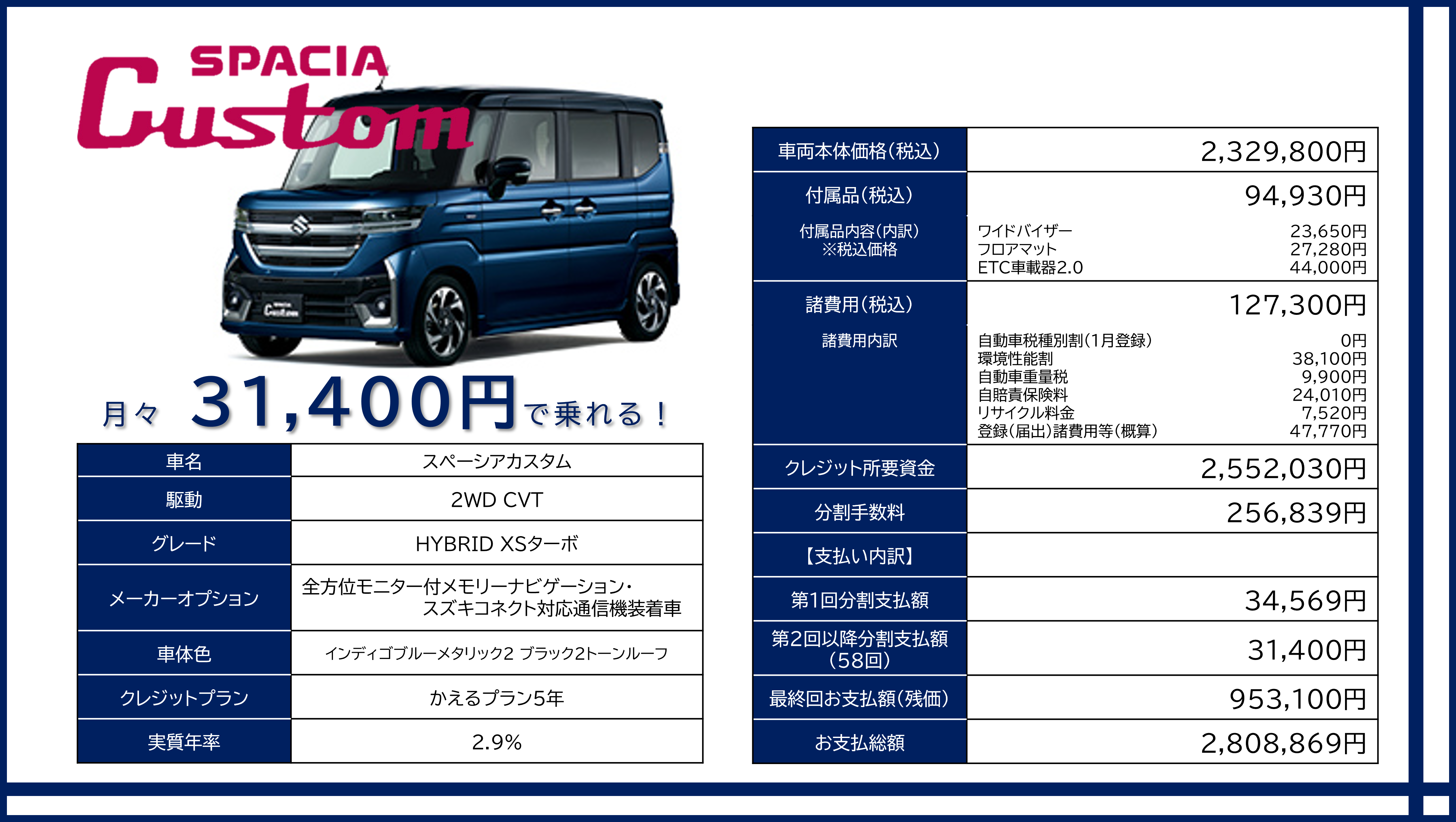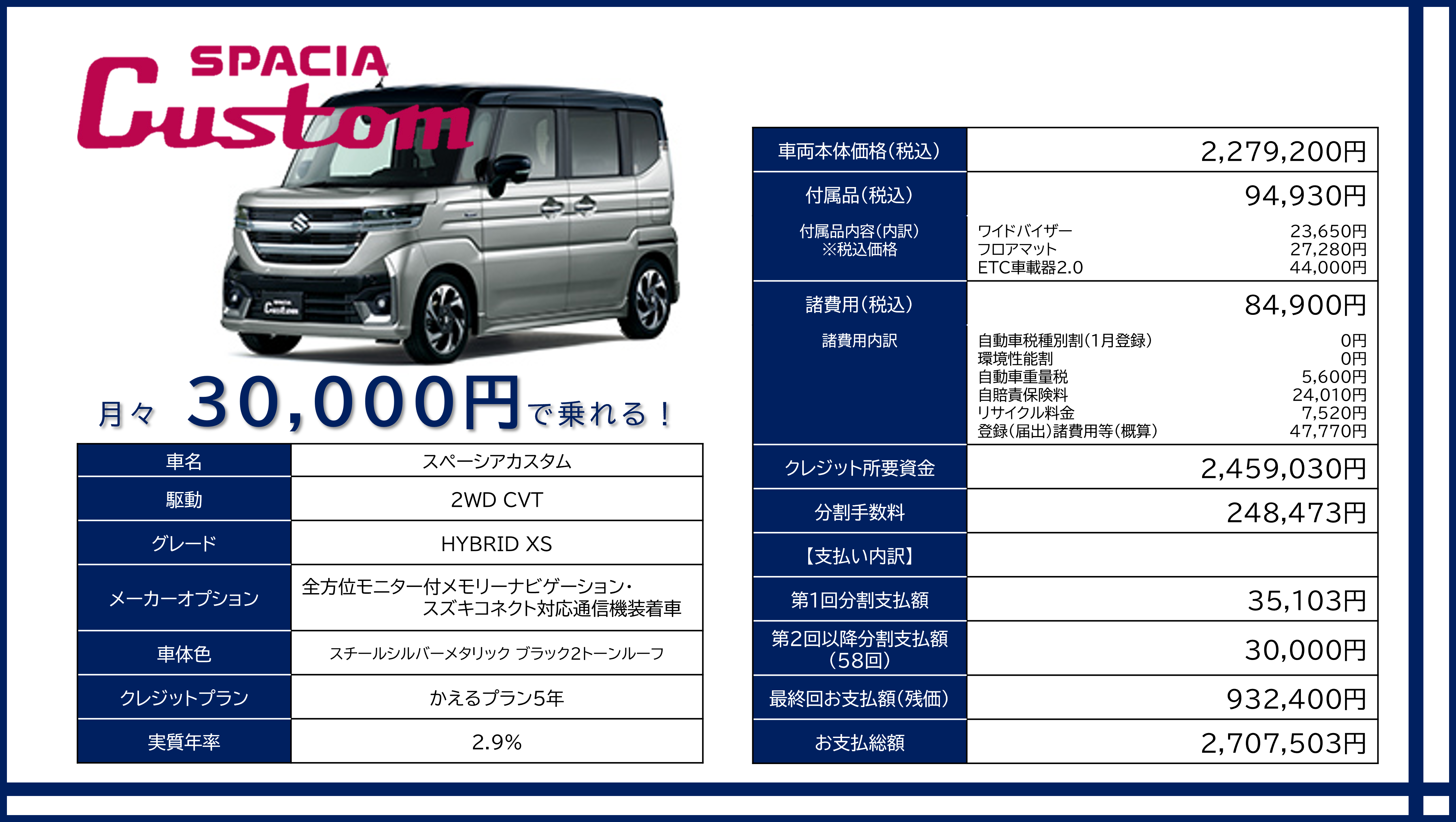 スペーシアカスタムのお支払い例