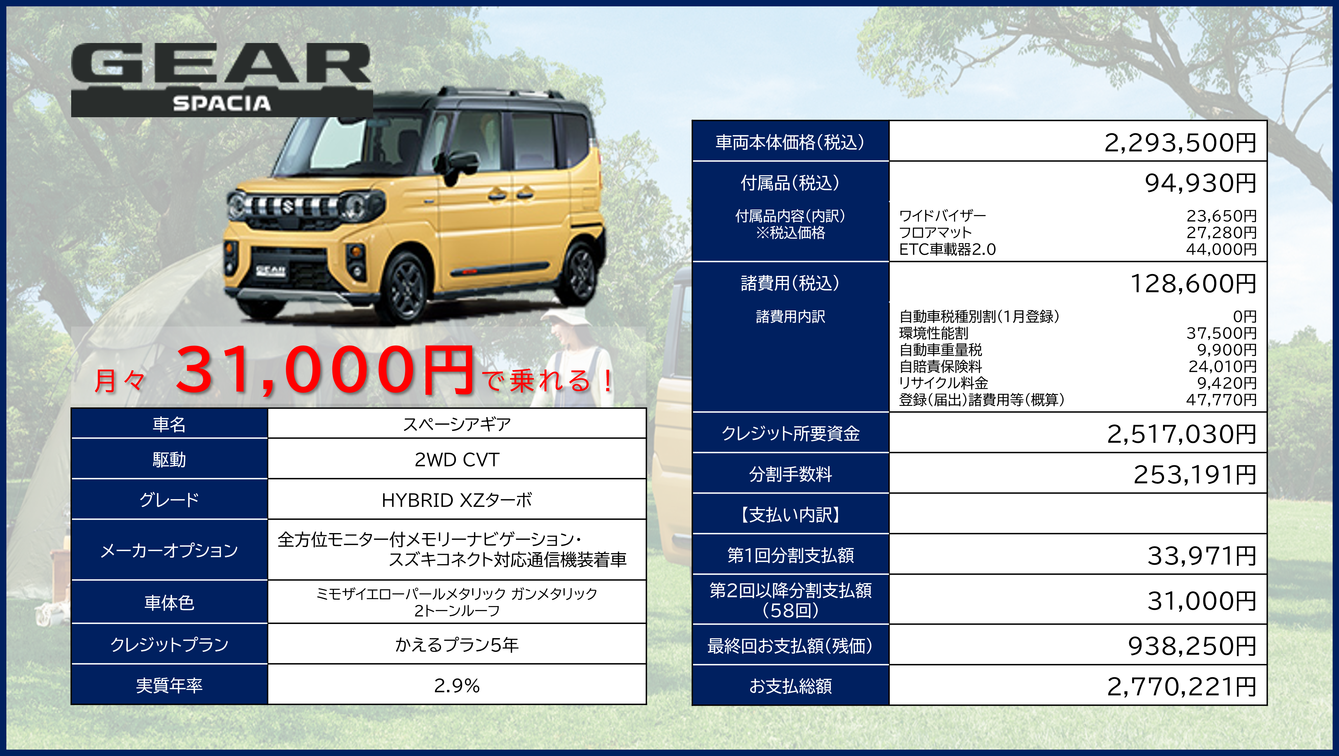 ※ 上記支払い例は参考価格です。販売会社によって金額が異なりますので詳しくはスズキ販売代理店までお問い合わせください。