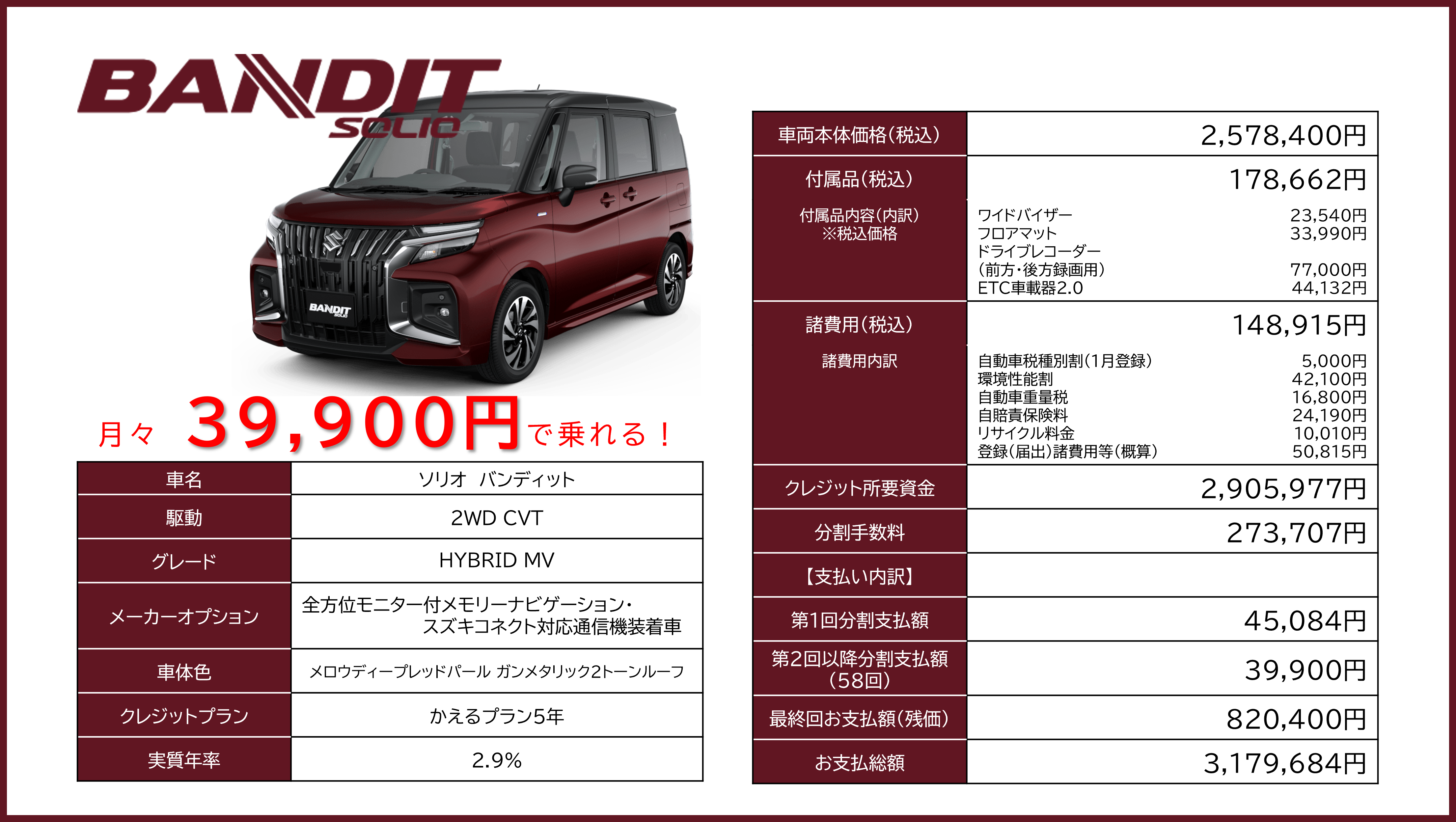 ソリオバンディット お支払い例