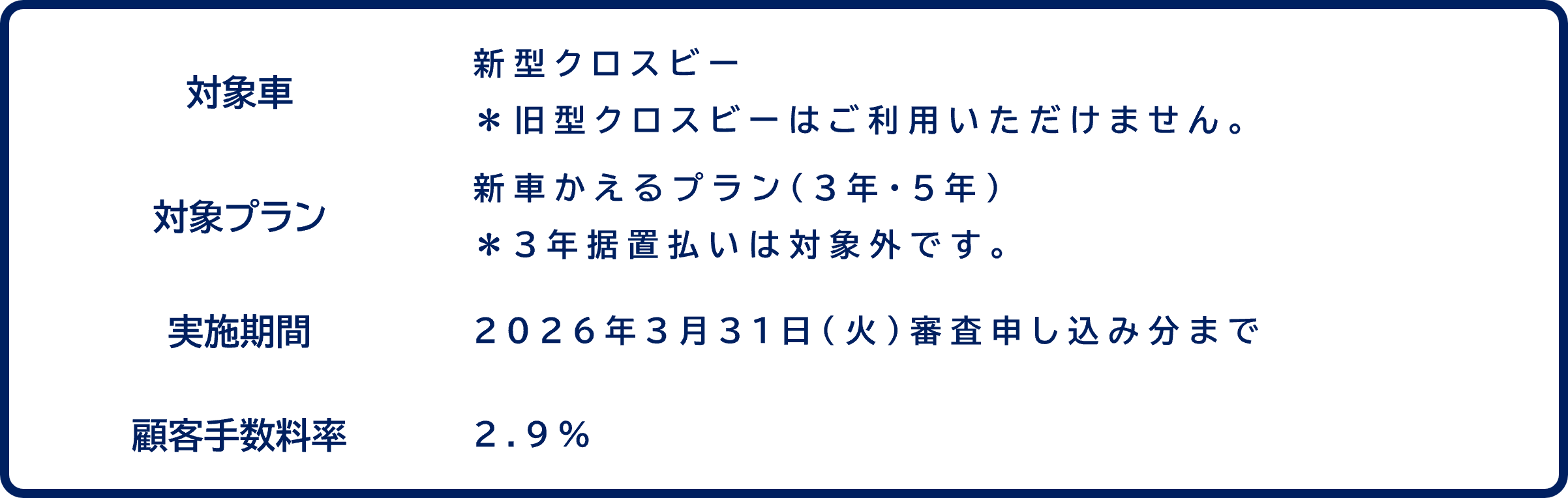 新型クロスビー限定かえるプラン特別手数料率のご案内